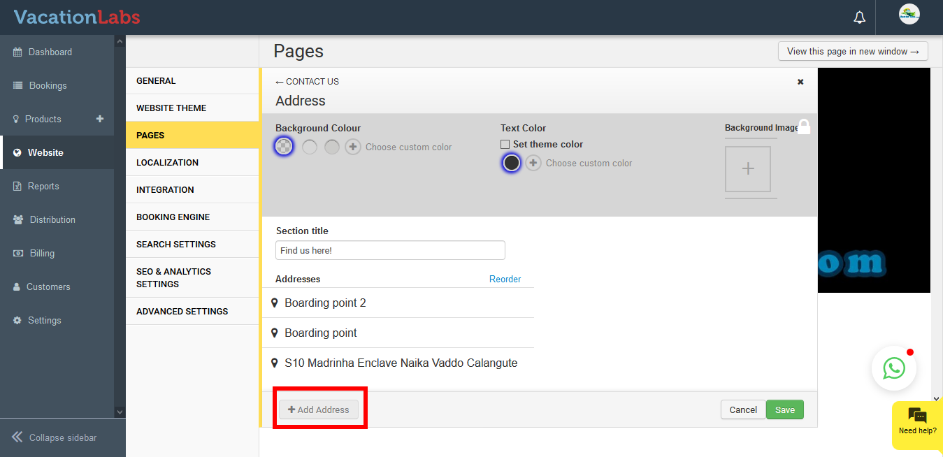 Please note: You are allowed to add only 3 addresses in a single section. If you have more address please add one more address section.