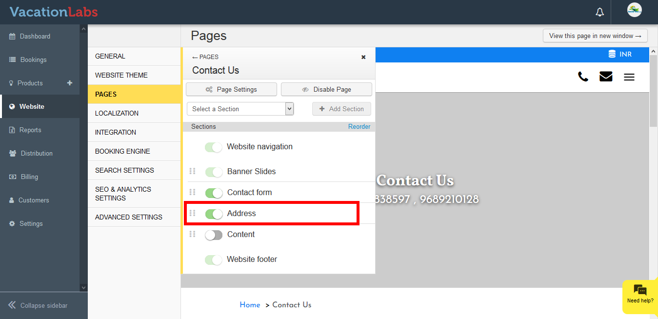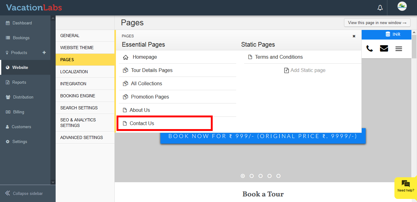 Please read our article on How to edit/modify Footer in Vacation Labs to update the links and text in footer.
