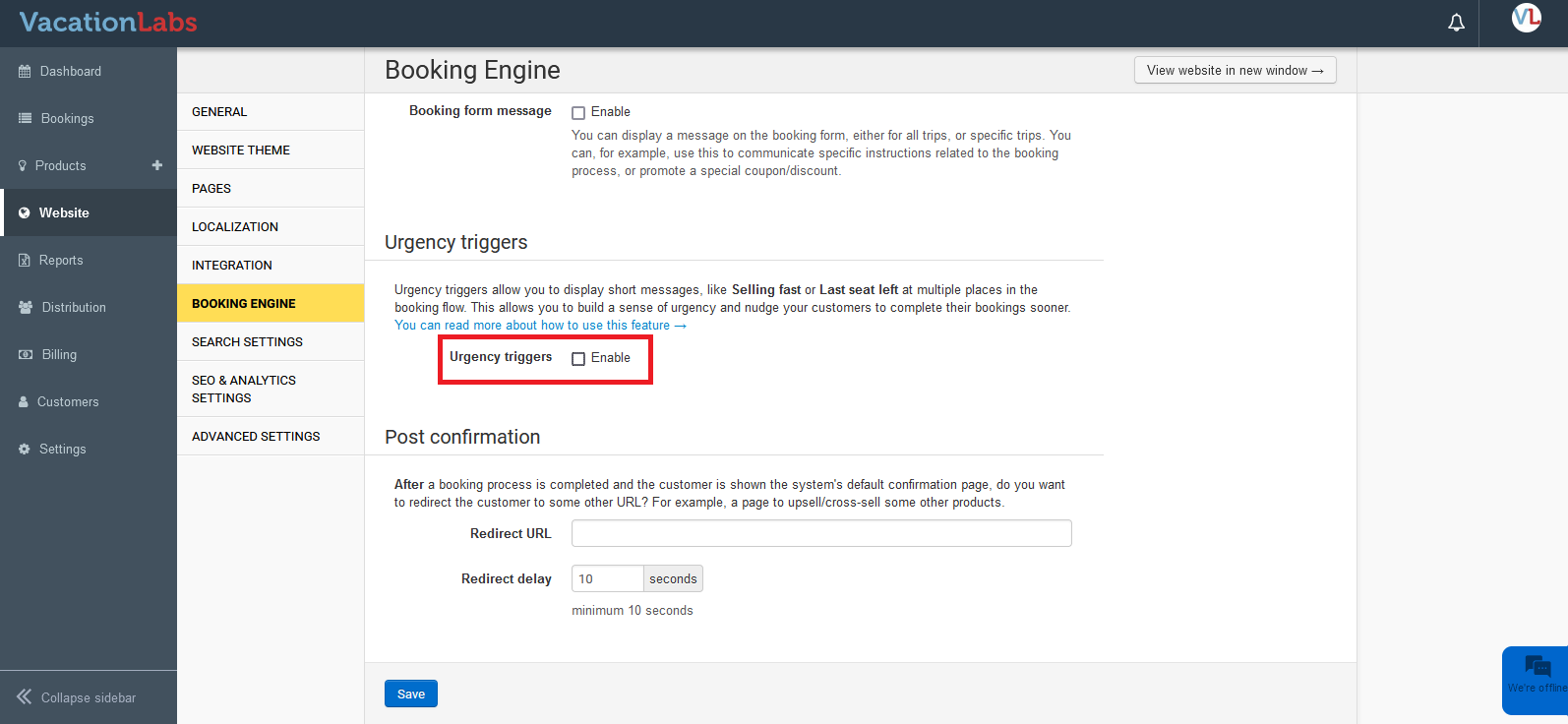 Please navigate to Website > Booking Engine. Here, you can enable or disable the Urgency Trigger function.