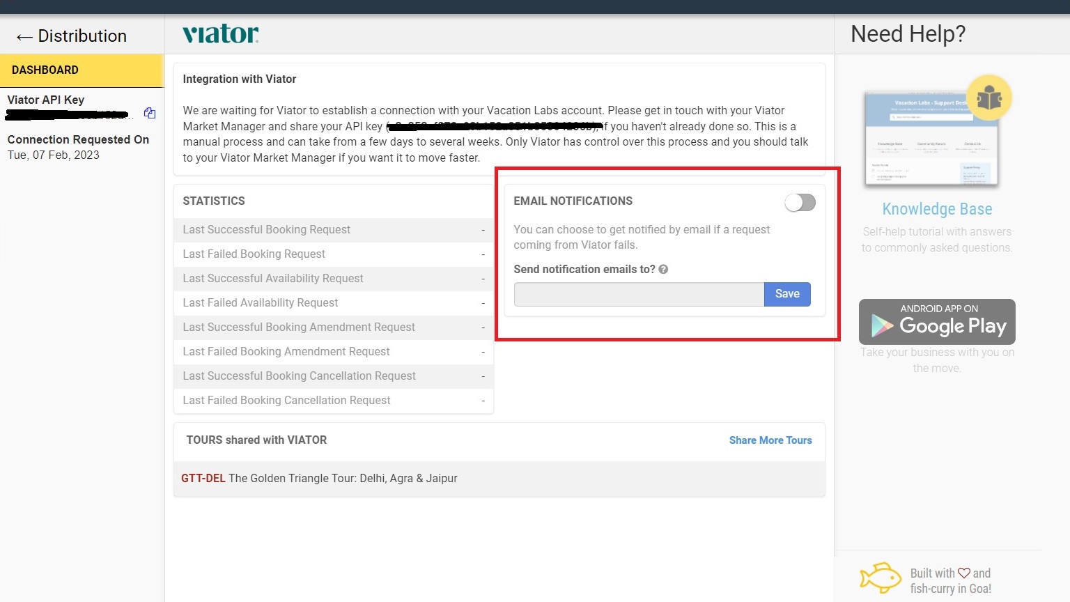 It is strongly recommended that you enable error notifications for Viator API calls. If something is not working right win the Viator <=> Vacation Labs integration / sync, you will be notified at most once every 24 hours via email