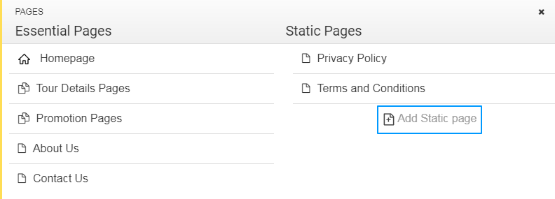 These are pages with fixed content. They comprise of the Privacy policy and Terms and conditions pages. But, besides these, you can create more informational pages for FAQs, Destination Guides, Customer Suggestions, Careers and so on.