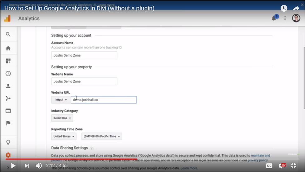 After selecting Create A New Account, you need to add your website details, like admin name, website name, website url, industry category (i.e. travel), country and time zone.