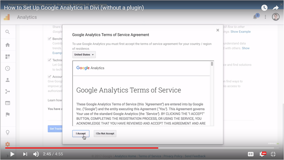 Once this is done, select Get Tracking ID and accept the Google Analytics services terms and conditions.