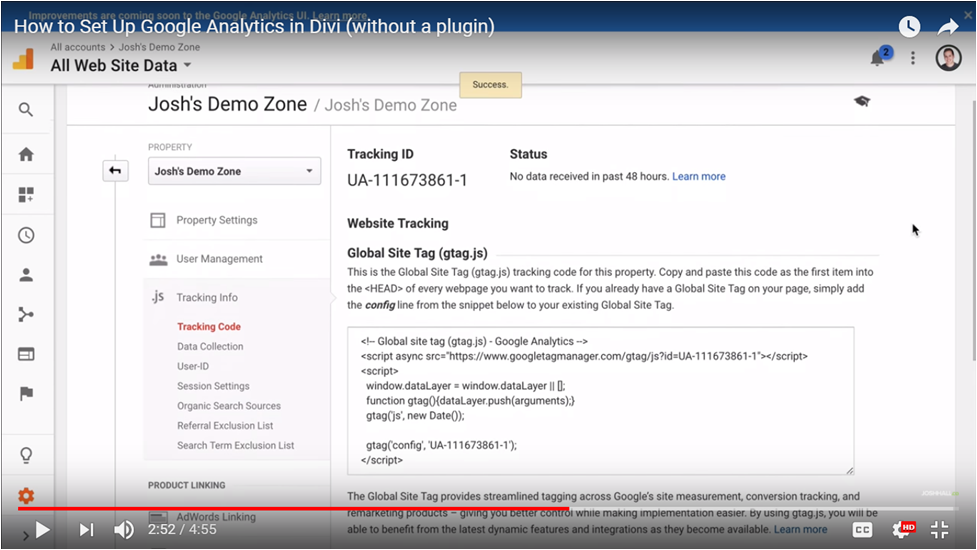 After this step, you will receive a code provided by Analytics like you see here –