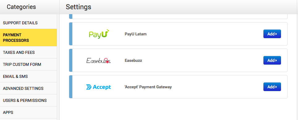 On the backend of the Vacation Labs system, check into Settings and click Payment processors. Now pick “Accept” from the list, enter the relevant details, and voila! You are set to activate “Accept” for the platform.
