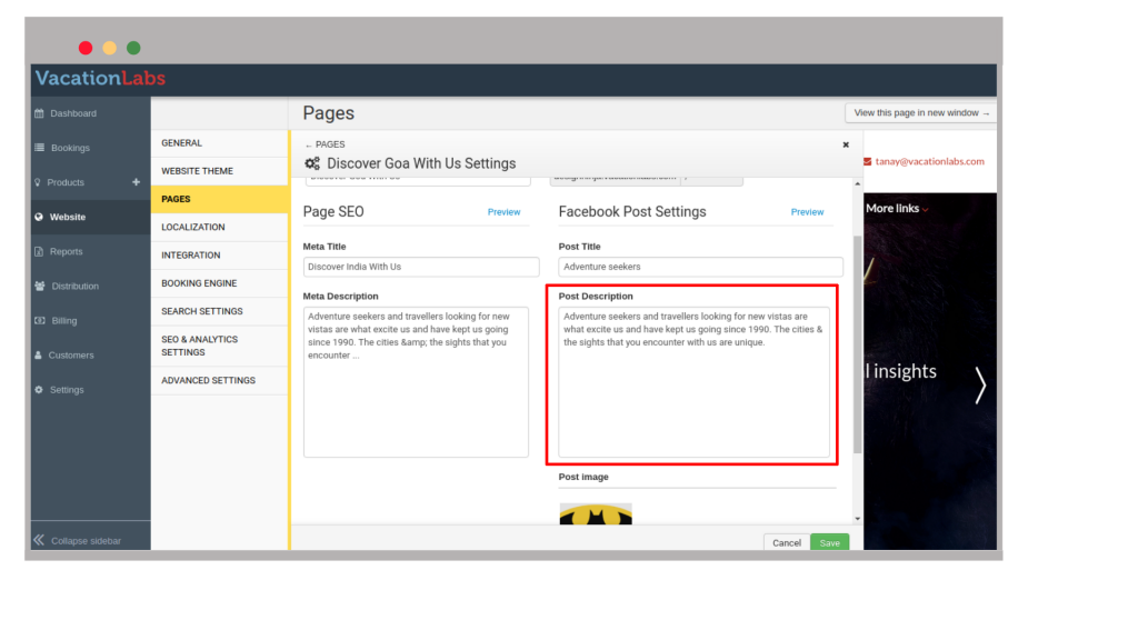 In our system the character limit for a Facebook post description was set to 160 characters. Based on feedback from customers and the latest recommendations from SEO forums, we have increased this limit to 300 characters. Users will be warned if they try to add a description longer than that, because Facebook may truncate text beyond this length.