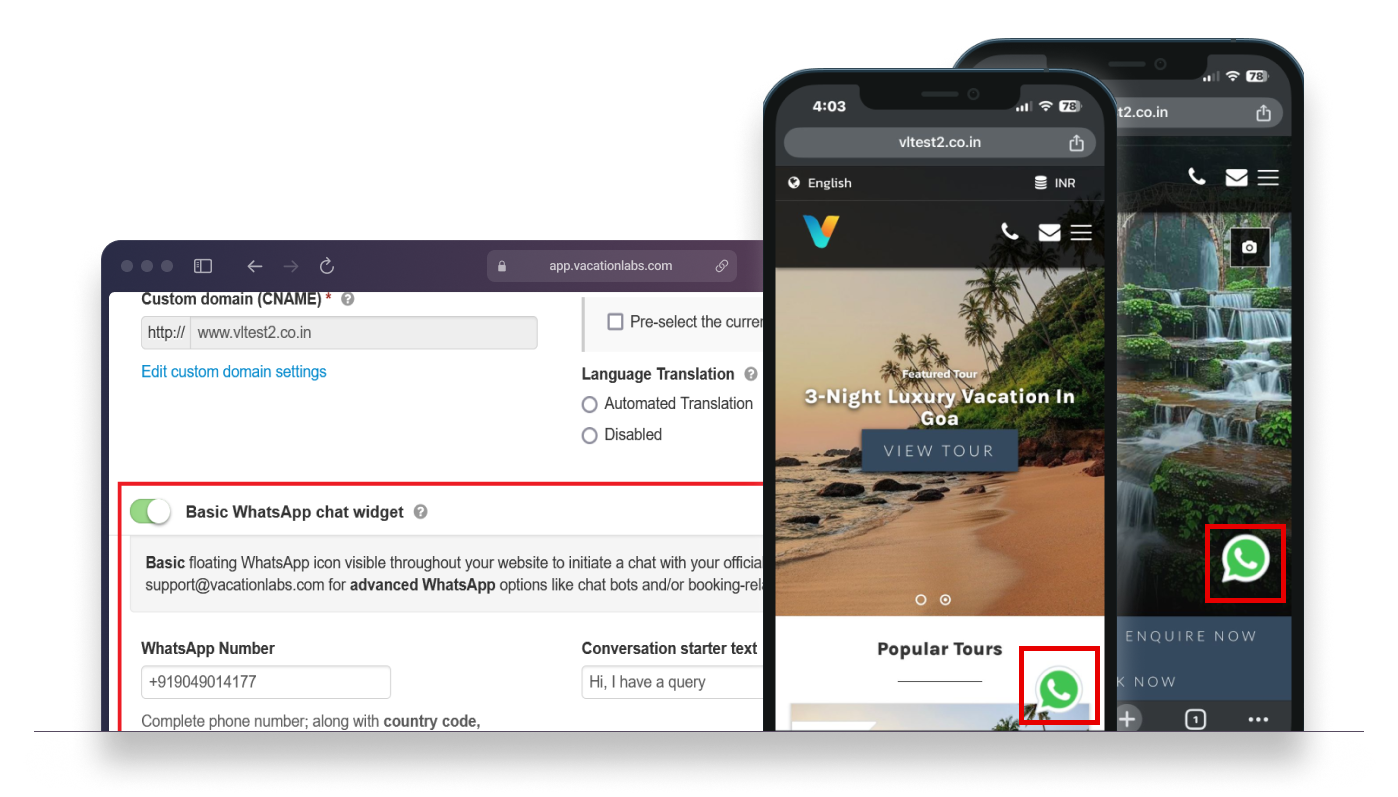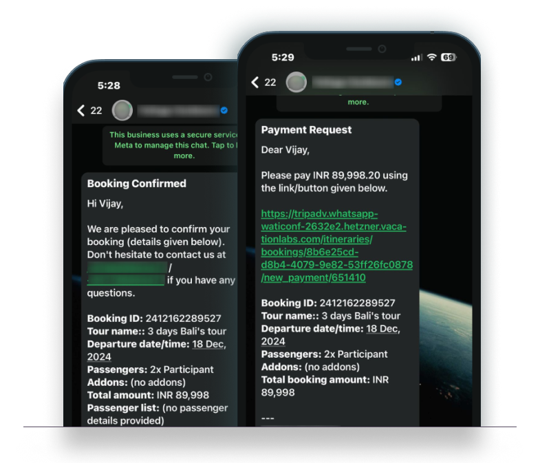While the WhatsApp chat icon are available for all account, we are also starting a pilot program which uses the WhatsApp for Business API (WABA) to send transaction messages, such as booking confirmation, payment links, pre-trip message, post-trip message, etc. via official WhatsApp for Business phone numbers. The same feature can be used for sending marketing messages to your customers via your official WhatsApp number.