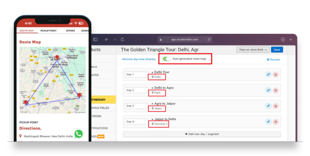 Route maps can now be generated automatically for multi-day tours based on each day’s map-location. This adds a visual touch to your tours and helps customers see the journey at a glance. Here’s how the automatically generated route map looks: