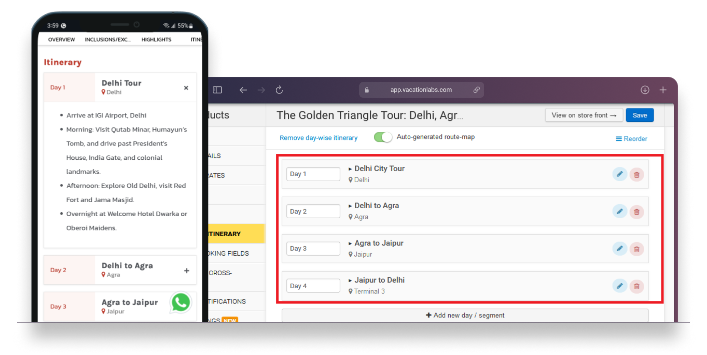 You can now create tour itineraries with each day shown as a separate collapsible unit. It’s clearer, more organized, and easier for customers to explore. What’s more, each day can be tagged with a location on the map, which is very useful for creating route-maps automatically.