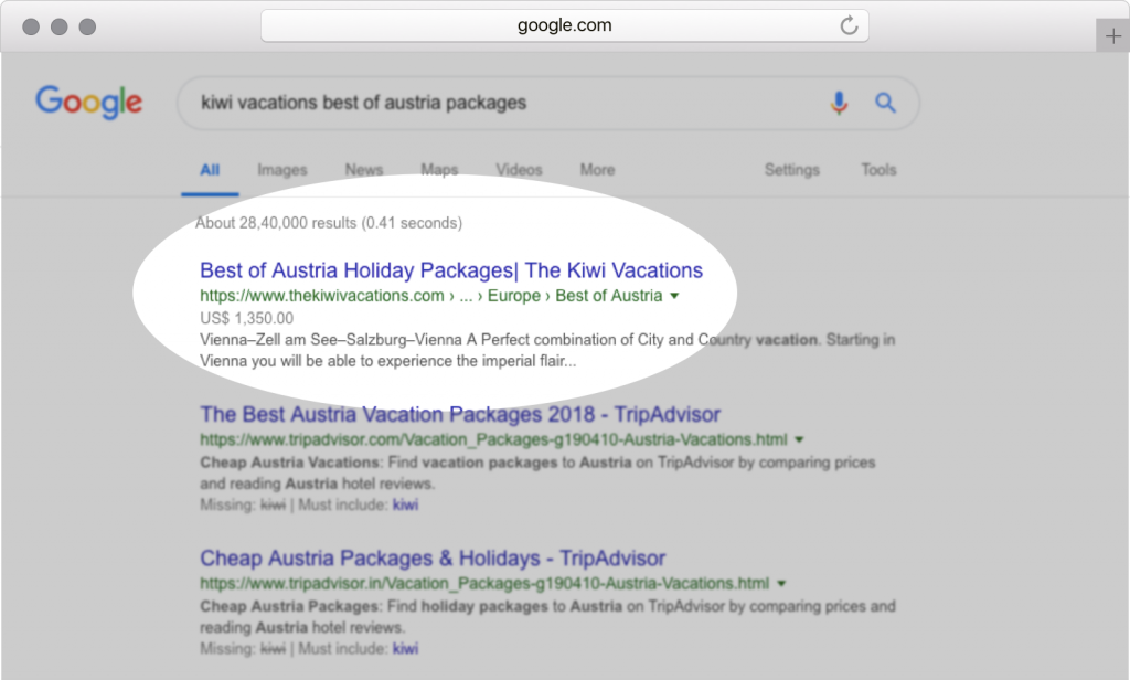 Similarly, hierarchy (or organization) of content on your travel website, can be communicated to Google via “breadcrumbs” which, again, show up on the Google search results page. This even helps in discoverability of related content by end-users, not Google alone.