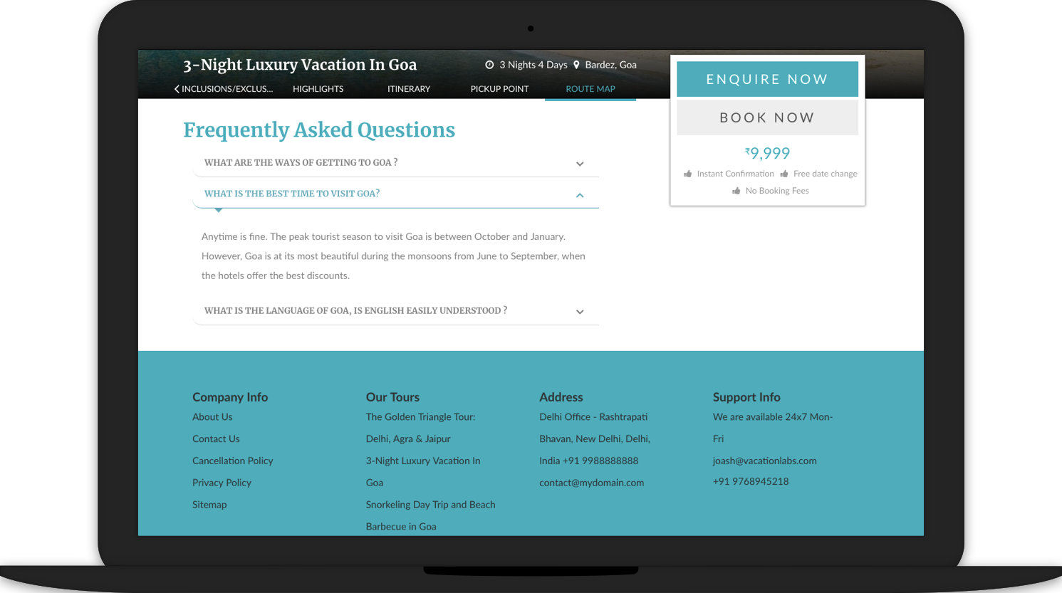 However, there were cases where one needed complete control over the formatting & display of content on the tour page. To support such cases, we’ve added a new type of field, called “Custom HTML”. It’s an advanced feature, and you need to know some HTML to use it, but it can allow you to do things like: