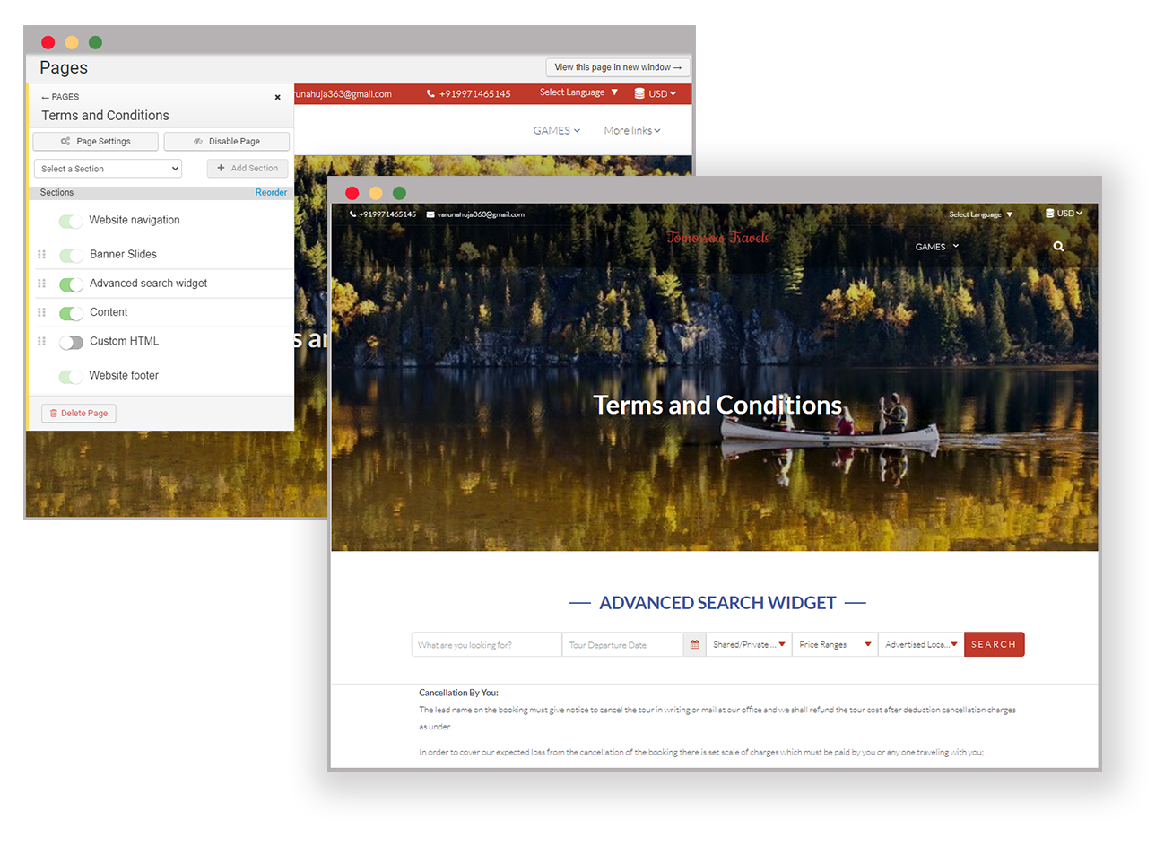 Now, apart from just on the homepage, the segmented search widget can be added as a section to any page on the website. If you have a lot of trips you’d like to showcase, you can now break them into different webpages with each page having its own advanced search option.