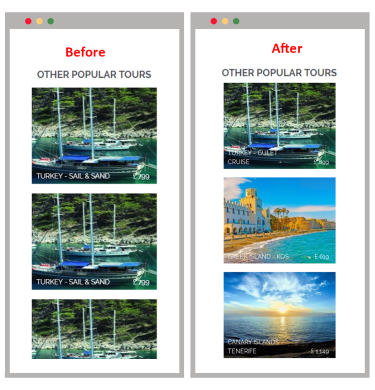 The sidebar on the Tour Details page contains Other Popular Tours which is configured to automatically show up to 3 related tours often those belonging to the same collection. This section had started displaying just 1 tour repeatedly 3 times. This issue has now been fixed and the sidebar is now displaying the correct data.