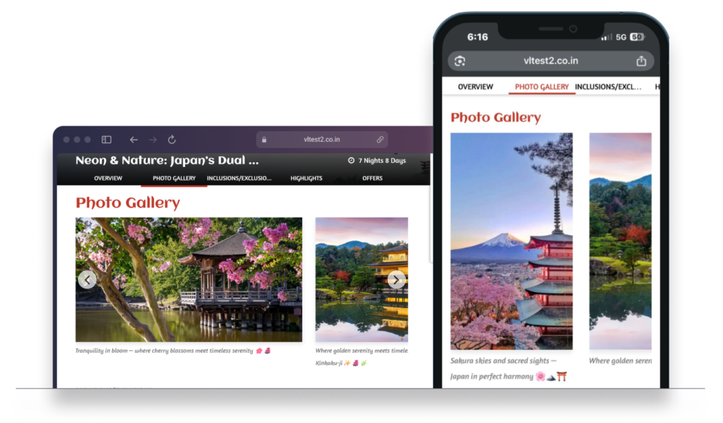 Photos automatically adjust to maintain their aspect ratio across all devices, ensuring your images always look their best. Simply enable the section in your tour page settings (steps given below).