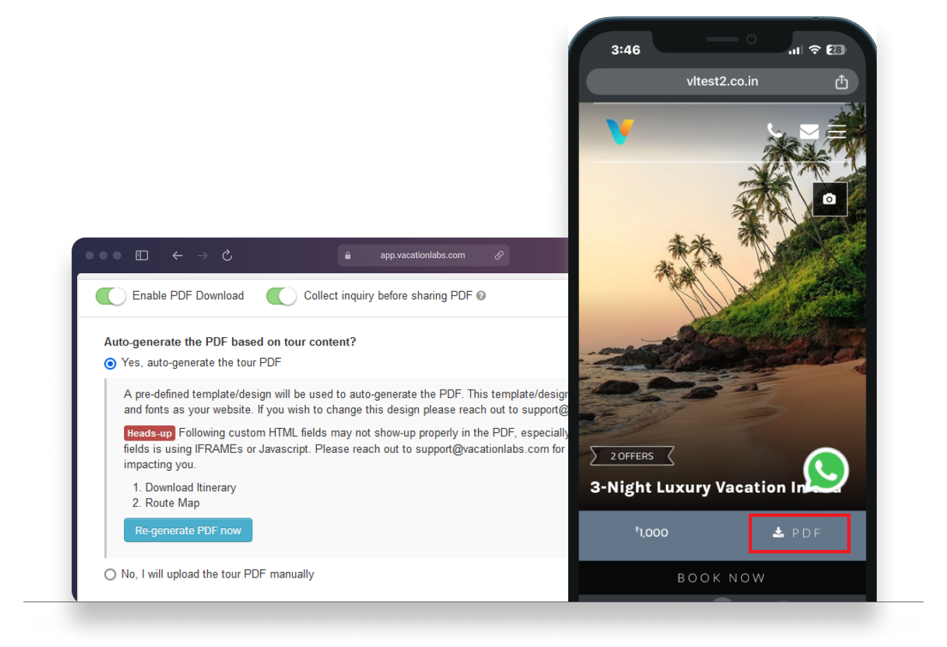 Promote sharing and discussion around your tours: Help customers with an e-Brochure that can be shared with their friends and family, especially for tours that are booked after internal discussions on WhatsApp groups.