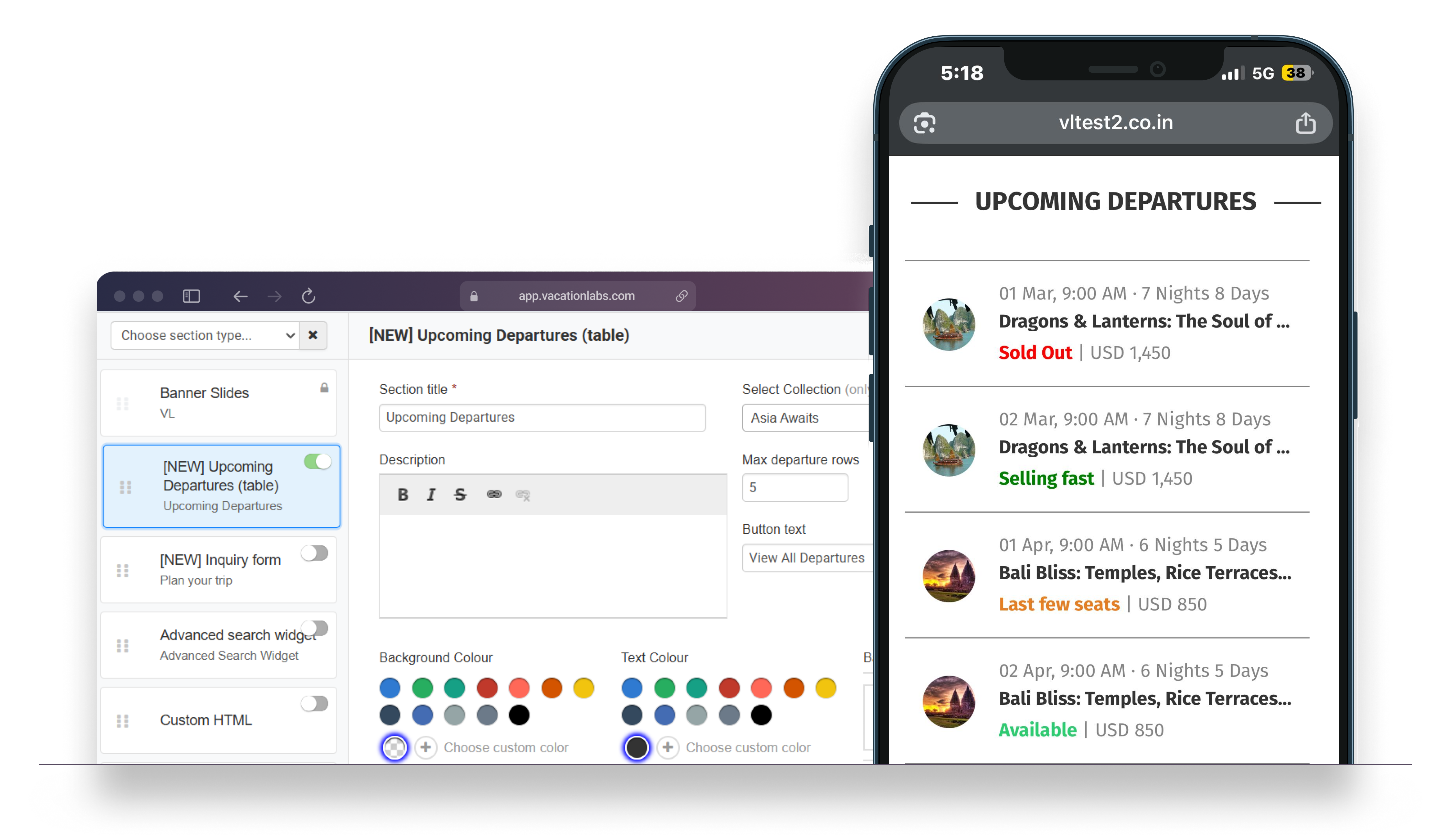You can now add an Upcoming Departures section to your website and display your next available tour dates in a clean, structured layout — anywhere you like.